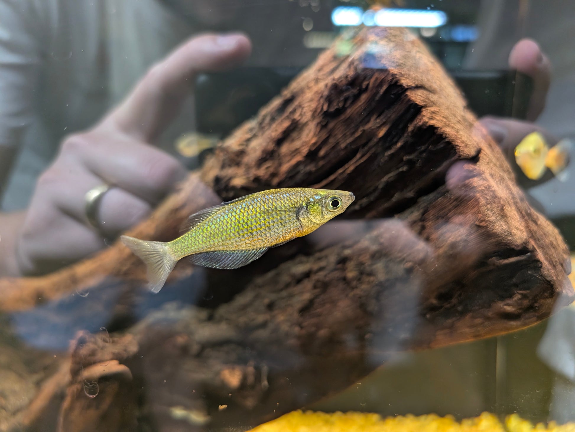 Diet: Fluval Bug Bites Tropical Formula, Hikari Micro Pellets, and a variety of frozen foods like brine shrimp and daphnia to enhance coloration