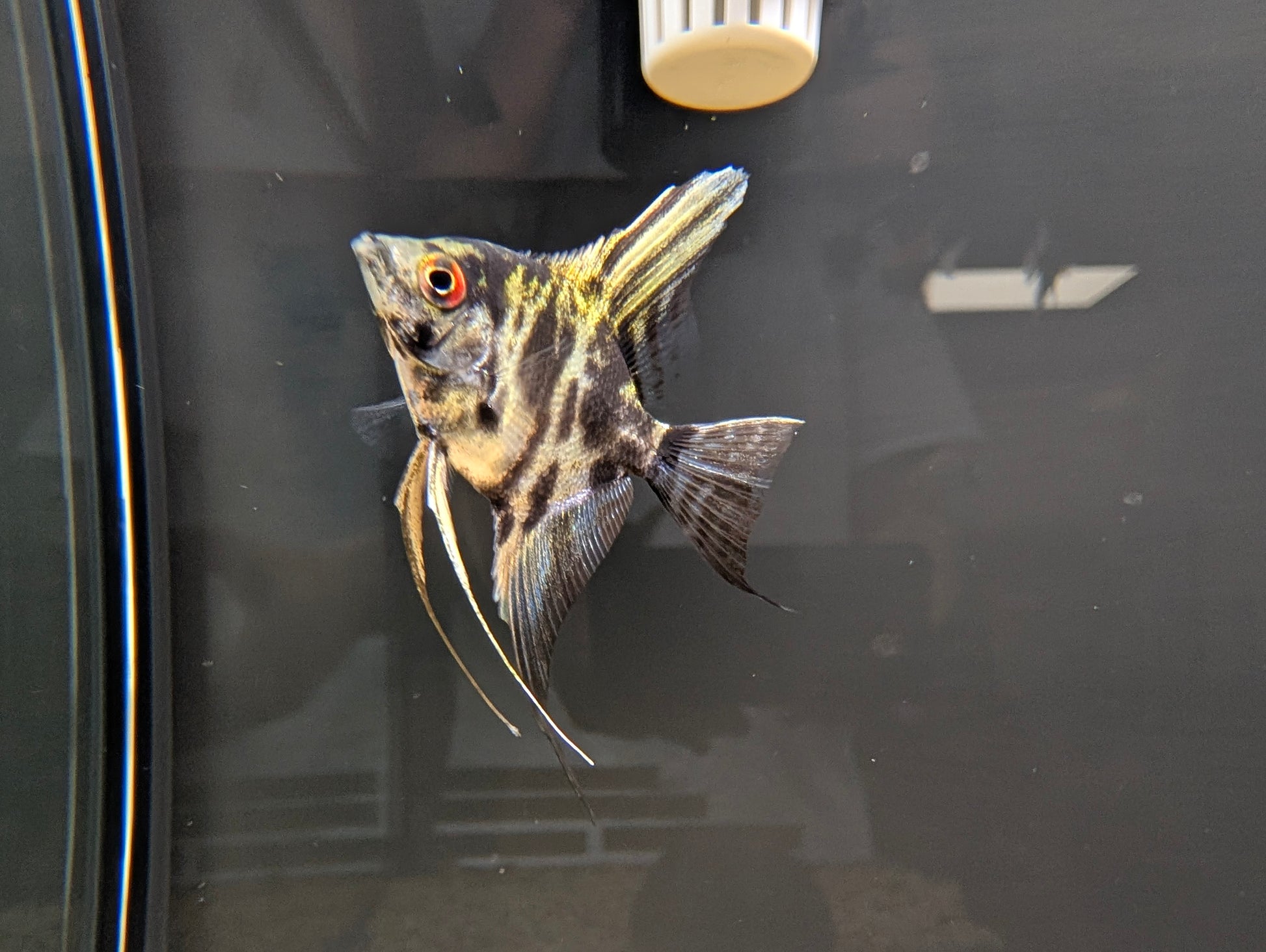 Diet: Fluval Bug Bites Tropical Formula, Hikari Vibra Bites, supplemented with frozen bloodworms, brine shrimp, or high-quality flakes and pellets