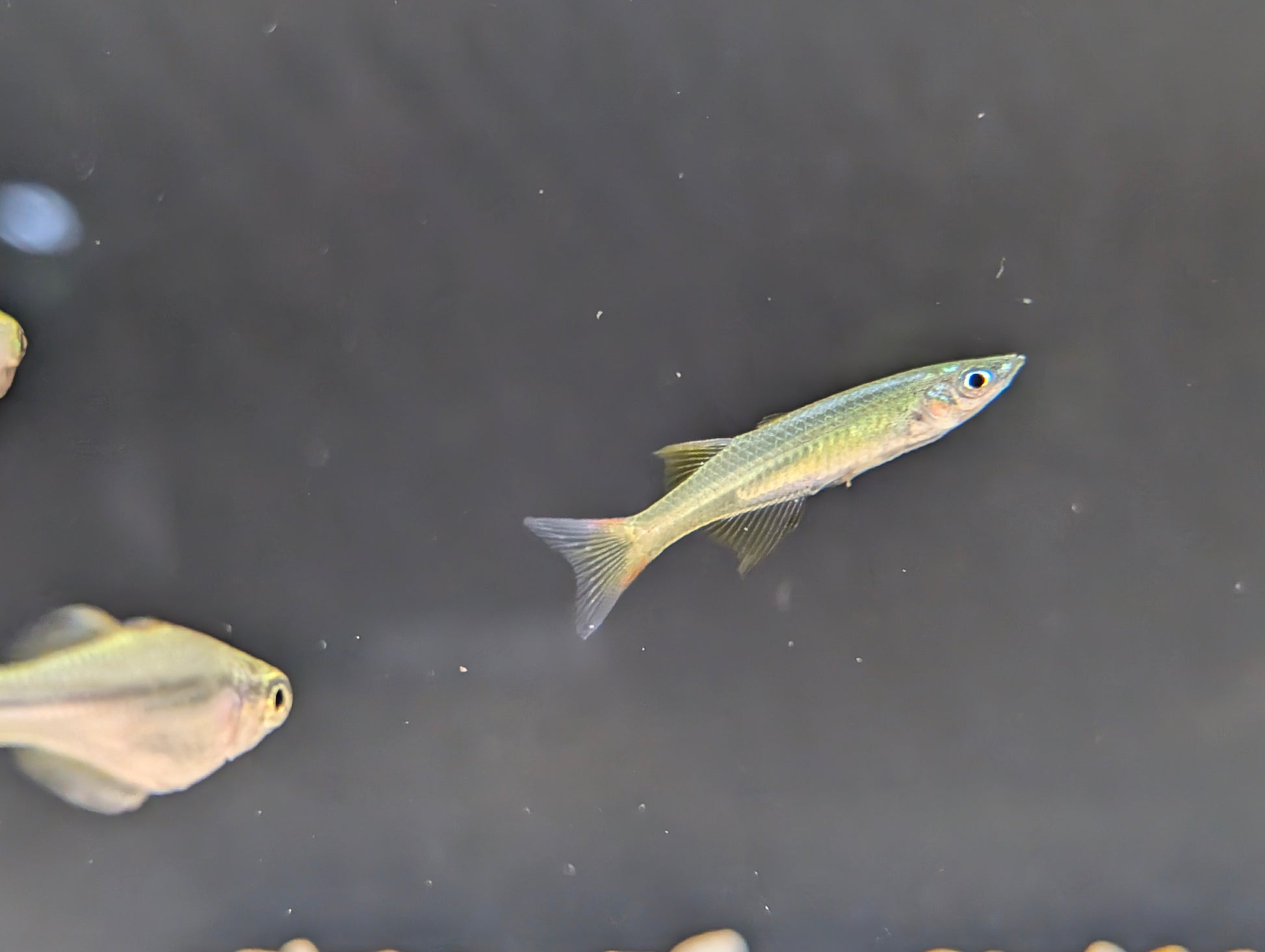 Ornate Rainbowfish are beautifully patterned nano fish native to Australia, known for their translucent bodies, vivid red and blue striping, and shimmering reflections. These peaceful, active swimmers thrive in planted aquariums with soft lighting and gentle flow. Their stunning colors intensify in stable, well-maintained conditions.