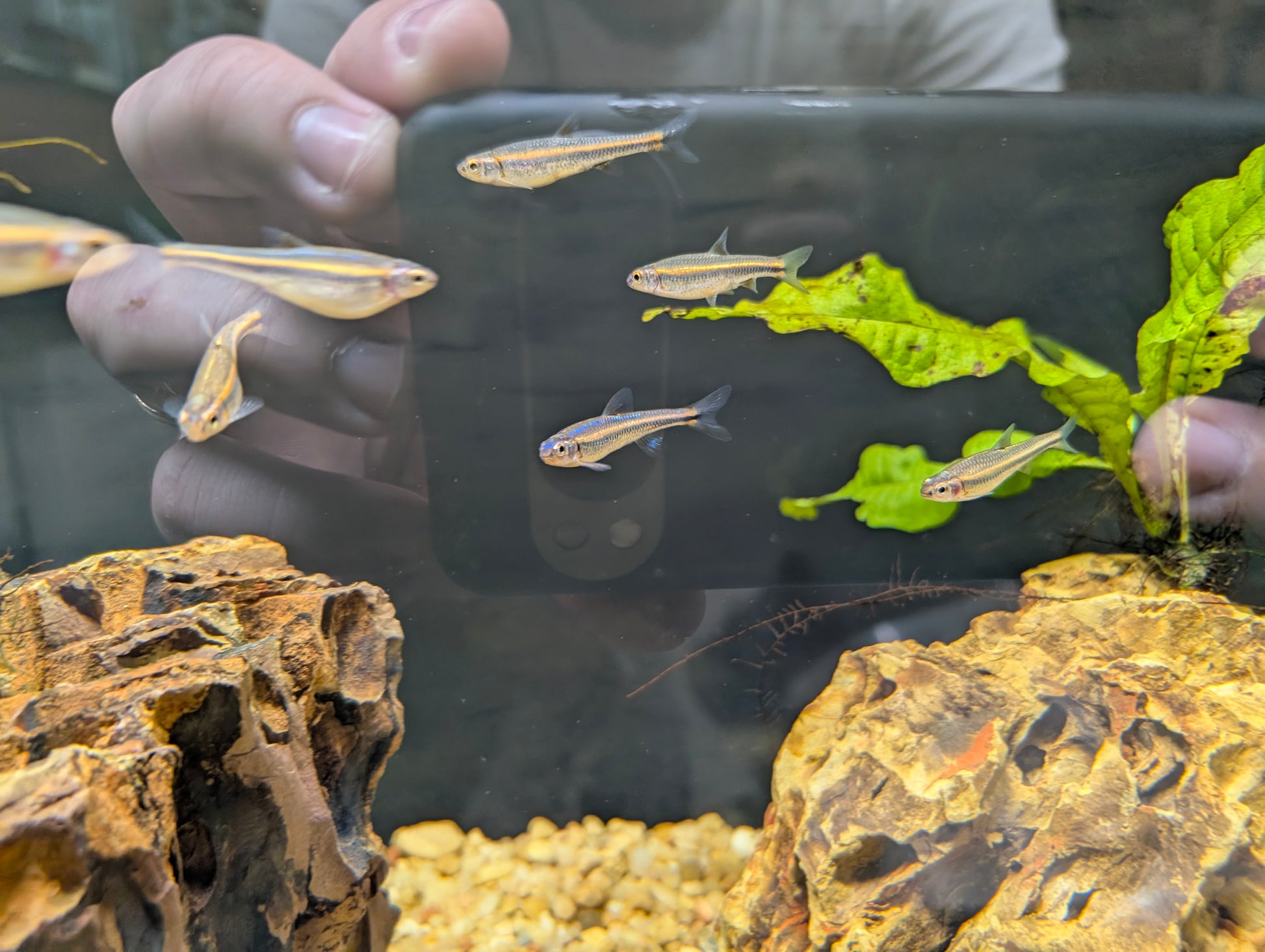 Diet: Fluval Bug Bites Tropical Formula, Hikari Micro Pellets, crushed flakes, frozen daphnia, and baby brine shrimp